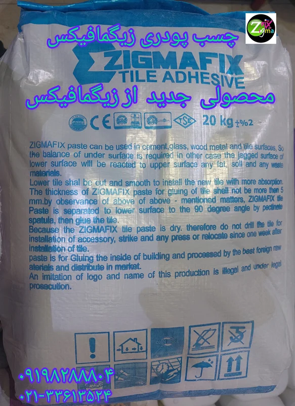 چسب پودری زیگمافیکس باکیسه بنفش جهت نصب انواع کاشی و سرامیک جاذب
