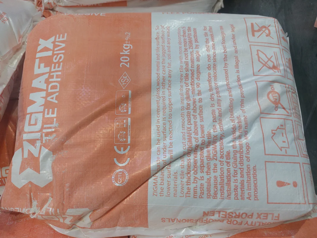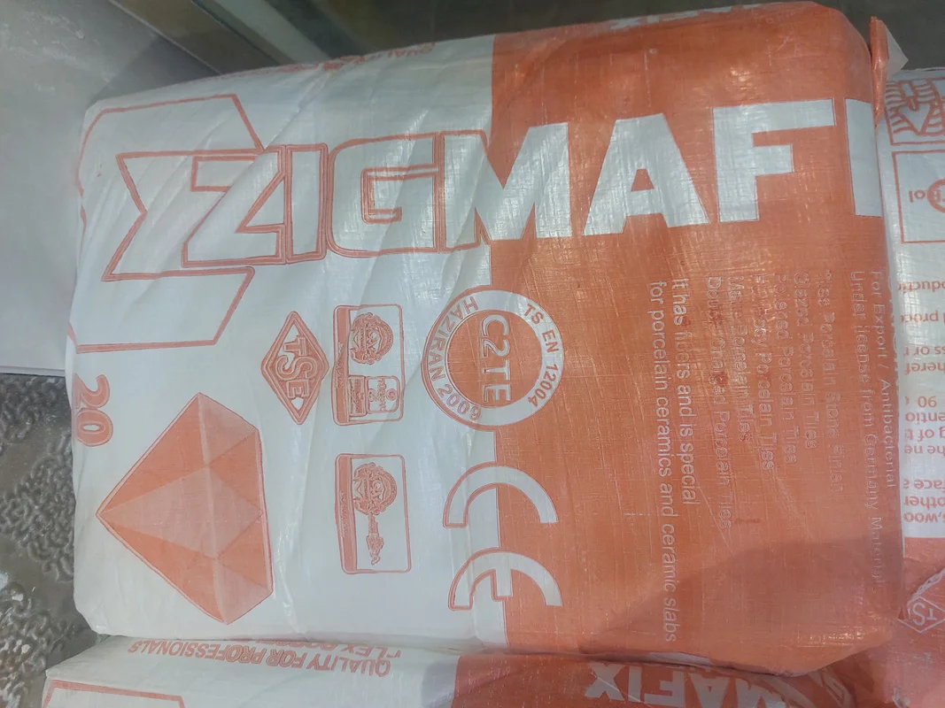 مناسب برای انواع سرامیک اسلب کف وبدنه ضد اب با قدرت چسبندگی بالا چسب پودری پرسلانی زیگمافیکس کیسه نارنجی